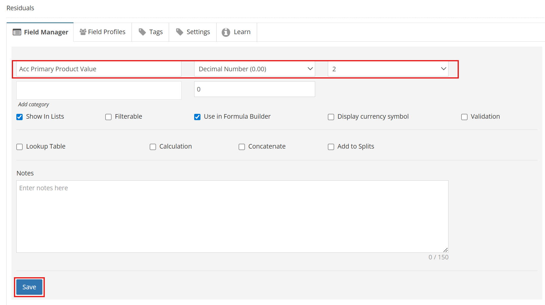 - Enter a name for the field (e.g. Acc Primary Product Value)