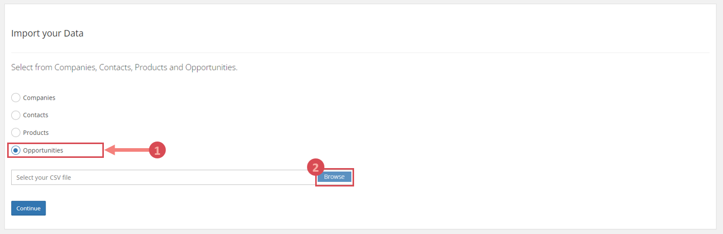 Select the relevant radio button and click on 'Browse' to add a file. Click 'Continue'.