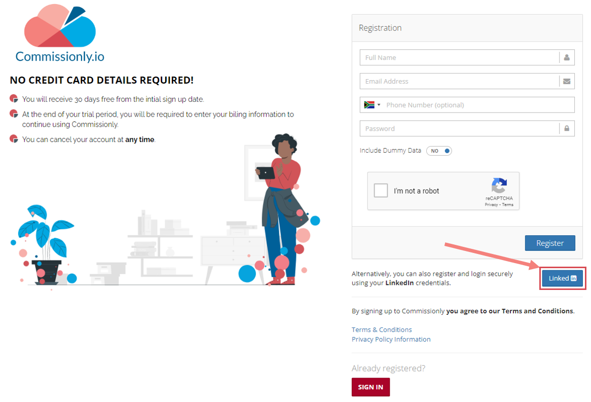 How to register or sign in to Commissionly with LinkedIn